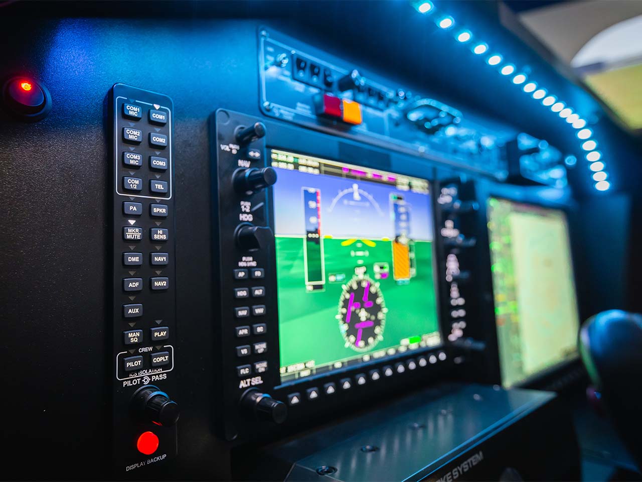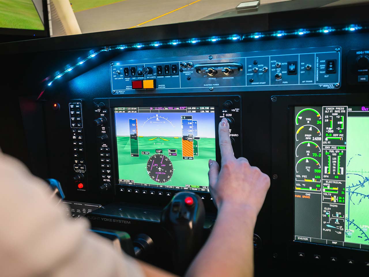 Кабіна з панелями приладів літака Socata TBM-900 на рухомій платформі дозволить виконати усі процедури справжнього польоту від запуску двигуна та усіх систем літака і вирулювання на полосу до польоту (VFR або IFR), приземлення, зарулювання і зупинки літака. Можливість використати будь який аеропорт в світі в різних метеоумовах. Справжні процедури навігації з використанням Garmin G1000.